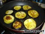 Баклажаны нарезаем толстыми кружочками и обжариваем на сковороде .