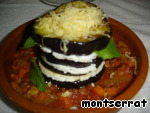 Признаюсь честно:блюдо содрала у итальянского повара Марко Фоликалди, думаю, он на меня не обидится. Башенка из баклажанов с мозареллой и пармезано мне так понравилась что я сразу ее захотела сделать, не смотря на то, что сыра мозарелла у меня не было. Я сделала с сыром фета, но этот сыр не так хорошо плавится. Тем не менее, блюдо получилось вкусное, нарядное, мне понравилось.