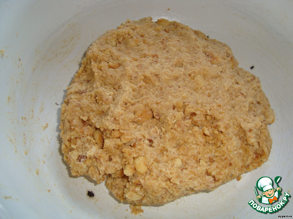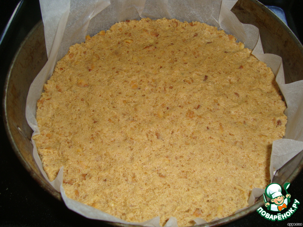 • Выложить половину этой массы на корж из бисквитной крошки.