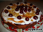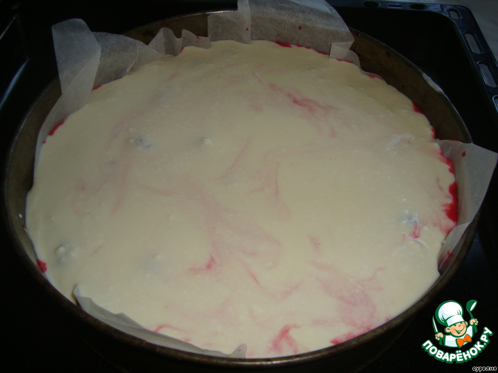 • затем выложить подготовленную вишню и залить оставшейся массой.