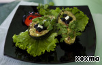 Теперь я наполню пустые половинки авокадо салатом, украшу их оливками и листиками петрушки, которая, кстати, избавит Вас от запаха чеснока!