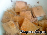 Шоколадку поломать, добавить к ней пряности и растопить ее на водяной бане с добавлением 2 ст. л. молока.