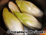 Цикорий ставим отваривать в подсоленной воде. Если вас не нравится его горьковатый привкус, предварительно вырежьте у каждого вилка сердцевину.