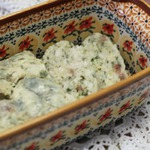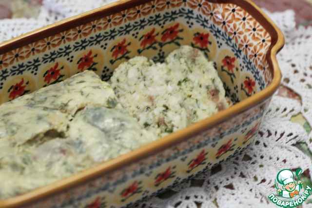 Перемешать с пряностями и зеленью, затем добавить яйцо, 1 ст. ложку муки,