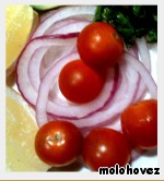 Для сальсы: помидоры, лук, чеснок, петрушку, кинзу мелко нарезать и заправить оливковым маслом, смешанным с лимонным соком. Посолить, поперчить, добавить каплю табаско. Перемешать.