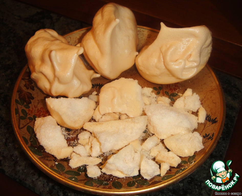 Чудесно! Спасибо за рецепт! В первый раз взбивала руками, чуть не лишилась руки, а пенка все равно была не густая, но даже плоские лепешечки получились изумительно вкусными! Что сподвигло меня на вторую попытку... Тут я уже взяла 3 белка и блендер (со специальной насадкой для взбивания белков). На медленной скорости все случилось просто чудесно, и кристаллы ветра навсегда покорили мое сердце! Спасибо еще раз за рецепт!