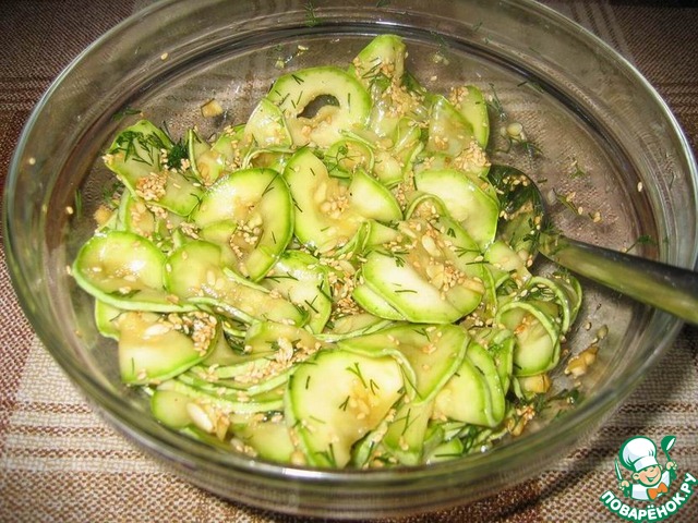 Мааринованные сырые кабачки нам очень нравятся. А здесь - вкусная "салат-метёлка"!