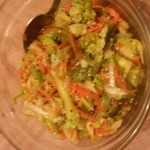 Обязательно попробуйте этот овощной, очень вкусный, к тому же очень полезный салатик! А пикантная заправочка, кунжут и киви делают этот салат необычайно-изысканным! (Ещe, скажу вам по секрету, этот салат - очень полезное применение свежих кабачков)