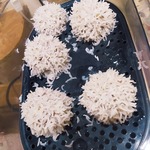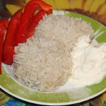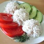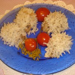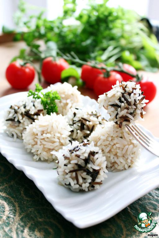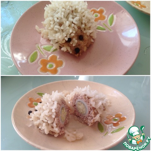 только рисинки не хотели держаться на ежике, пришлось очень аккуратно перекладывать на тарелочку...может от того что рис пропаренный был?