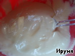 И просеиваем в яично-сахарную смесь. Аккуратно перемешиваем лопаточкой или ложкой. Получается тесто консистенции густого крема.