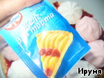 У меня вот такое бесцветное желе для торта. Содержимое пачки нужно смешать с 2 ст.л. сахарного песка, постепенно ввести воду, тщательно перемешать. Довести до кипения и при постоянном помешивании кипятить 1 минуту. Снять с огня и остудить 2-3 минуты. -