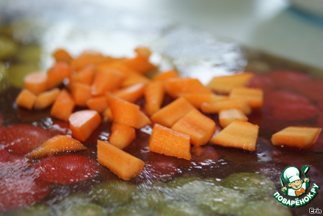 - Морковь (я использовала кучку маленьких молодых морковок) — 1 шт