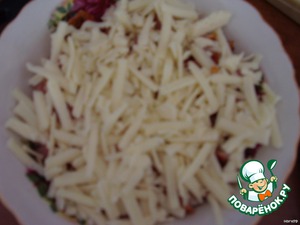 Сыр натереть на терке. Сыр обязательно твердый, не плавленый, тогда в горячей воде он немного скрутится, будет похож на рис, а вкус будет насыщенный.