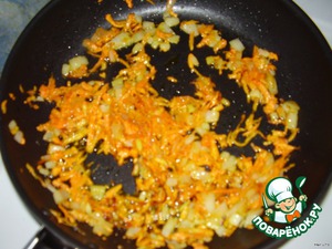 Лук и морковь измельчить и пассеровать на растительном масле. Добавить в супчик, посолить. Готово: быстро и очень вкусно.