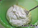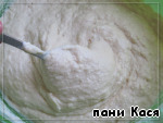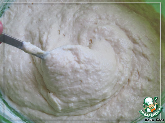 • В 2-3 столовые ложки муки замешиваем разрыхлитель, добавляем в тесто. И далее добавляем муки, пока тесто не станет как густая замазка, не течет, но к рукам липнет очень сильно.