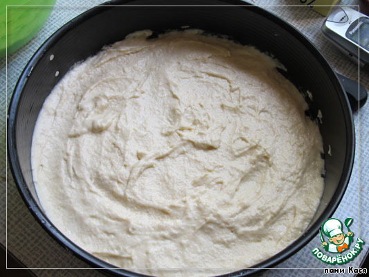 • Половину теста выложим в форму (мокрыми руками получается, хотя липнет ужасно)