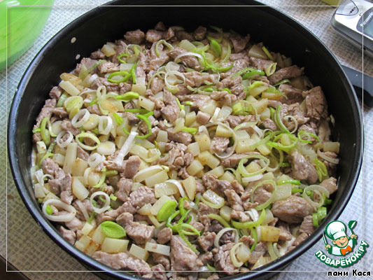 Рецепт «Мясной пирог с картофелем и луком-пореем»: