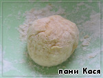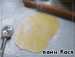 Добавляем муку и месим не очень крутое тесто. Я даже полежать ему не дала, сразу раскатала.