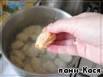 В кипящую подсленную воду (литра полтора) запускаю клецки. За счет крахмала и сметаны в фарше они получаются нежные-нежные, плотненькие, откусываешь - а внутри много сока!