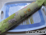 Смазала миску маслом растительным (так пленка не пристает намертво к стенкам и "выкройку" можно двигать)