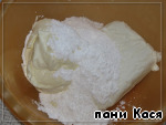 Смешиваем холодные творог, сметану и сахарную пудру.