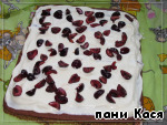 Десерт как раз для жары - храниться должен в холодильнике, но не такой холодный, как мороженое. Творожная начинка, шоколадный корж и свежая черешня.