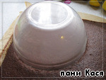 Перевернула на миску, расположила как надо, вдавливая ко дну. Боковинки сформировала из полосок коржа.
