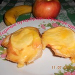 Сверху укладываем кусочки яблок (порезанных кругленькими дольками).