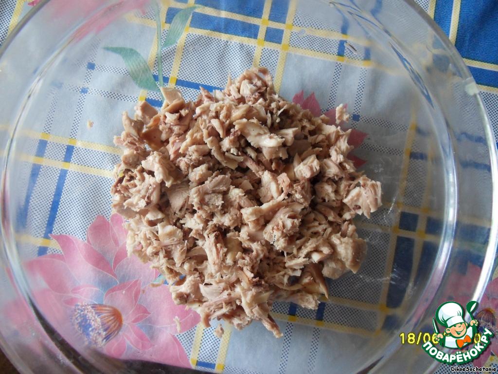 Здравствуйте!!! Все предельно просто! Окорочка отварить, остудить и нарезать...