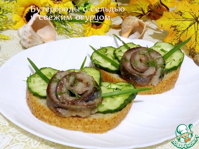 Рецепт «Бутерброды с сельдью и свежим огурцом»: