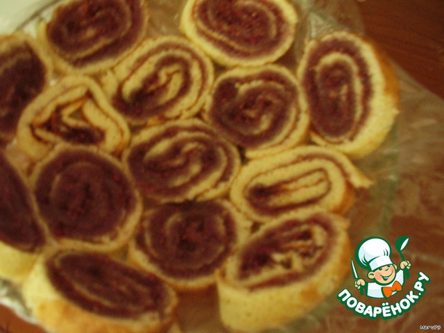 - Рулет (бисквитный, с начинкой из клубничного варенья) — 2 шт