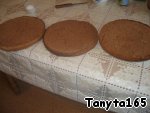 Сверху выкладываем крем. Тоже самое проделываем со вторым слоем. Третий слой и бока смазываем ТОЛЬКО кремом.