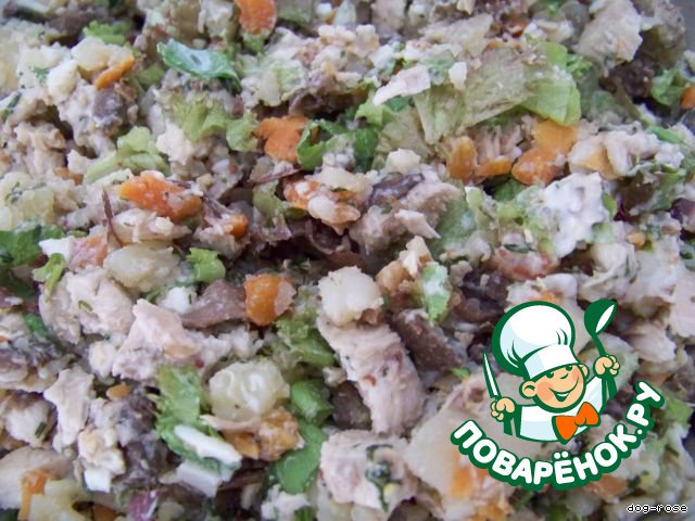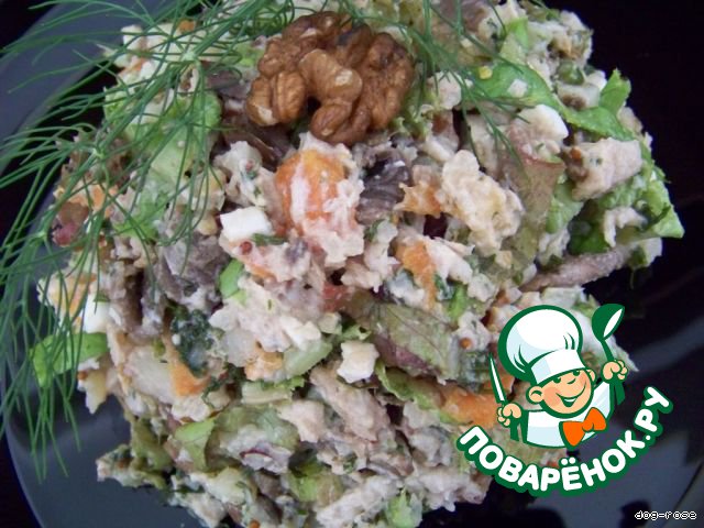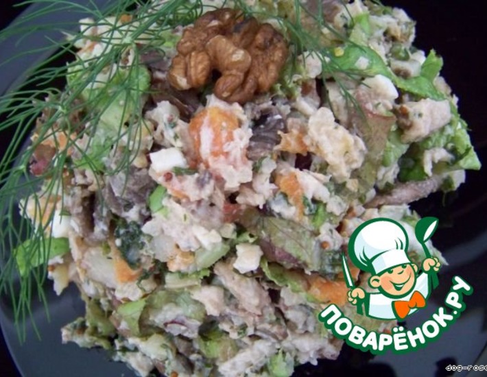 Вкусный, оригинальный, нежирный, с интересной заправкой. Хорош и к праздничному столу, и на каждый день.