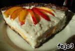 Отжать желатин и на водяной бане растопить, добавить грушевую массу. Все перемешать и выложить в форму. Сверху тортик украсить нектарином.