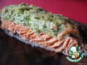 Лосось под крамблем из копченого палтуса