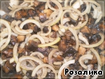 • Лук добавляем в грибы тушим 1-2 минуту.