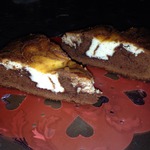 Вливаем взбитые яйца в шоколадную смесь, еще немножко взбиваем. Всыпаем 250 г муки, смешанной с 1 ч.л. разрыхлителя, размешиваем.