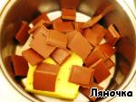 В кастрюле растопить маргарин и шоколад. Снять с огня.