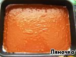 Форму застилаем бумагой для выпечки, выливаем сверху тесто.