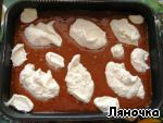 Поверх теста аккуратно распределяем творожную смесь в любом порядке.