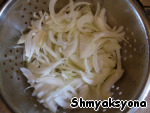 • Пока филе тушится, очищаем лук, нарезаем его полукольцами.