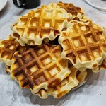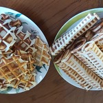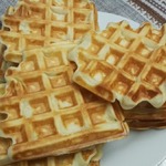 Взбить белки в очень крепкую пену и осторожно подмешать в тесто. Выпекать вафли до золотисто-коричневого цвета.