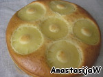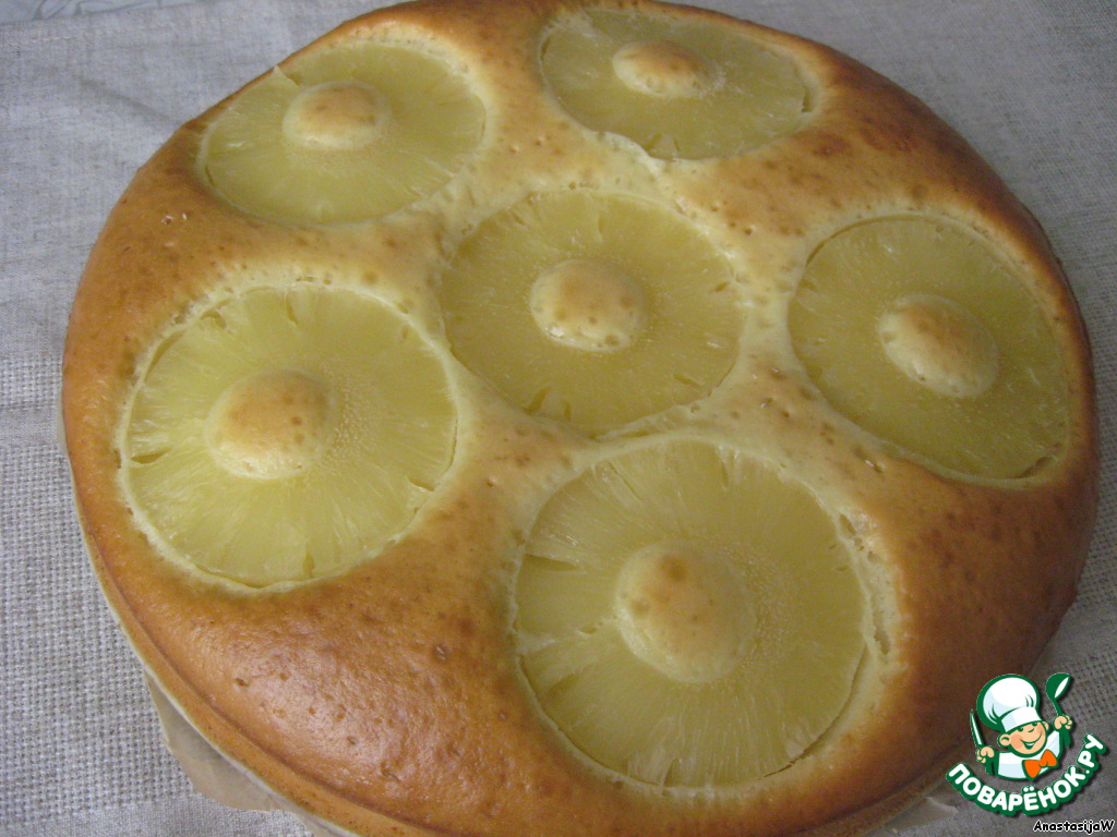 Готовила с двумя отступлениями: положила кольца ананасов на дно формы и несколько штук поверх теста - получился "двусторонний" пирог)); в серединку ананасов положила по несколько ягодок клюквы - вкус стал богаче и вид веселее.