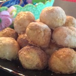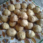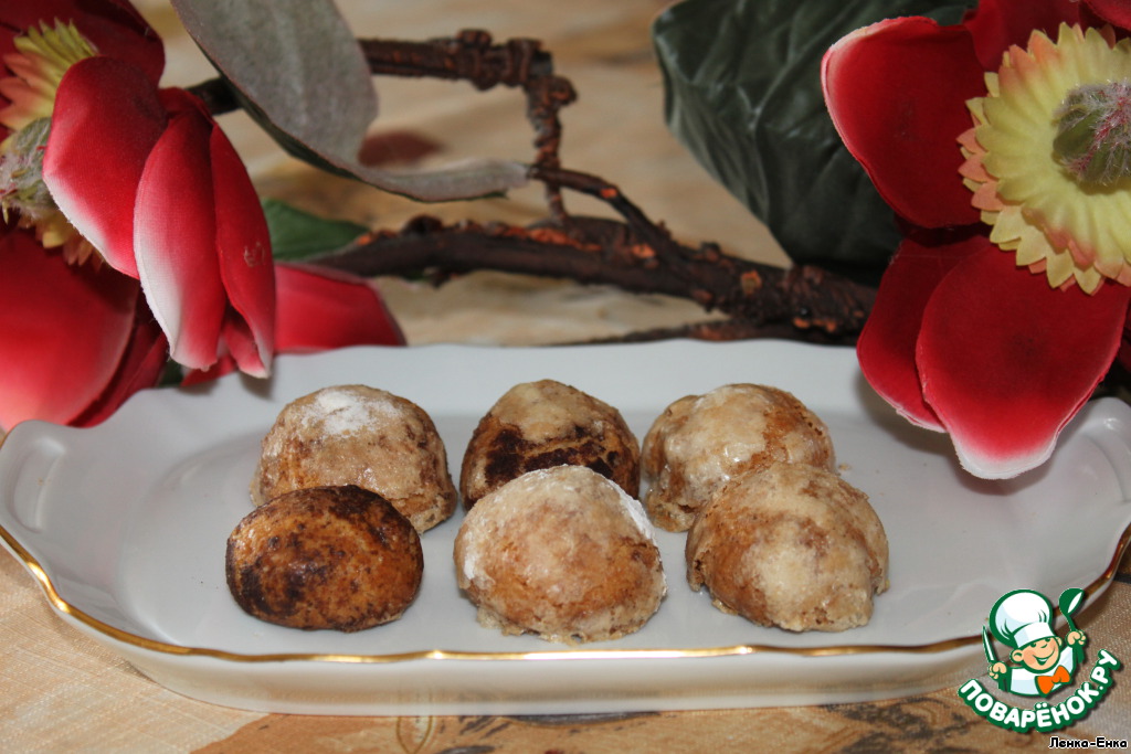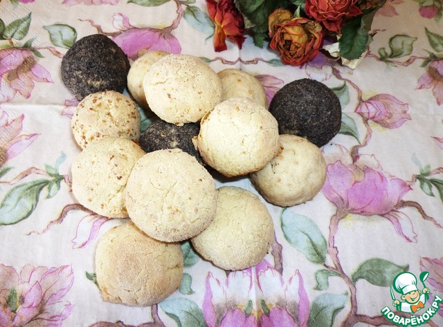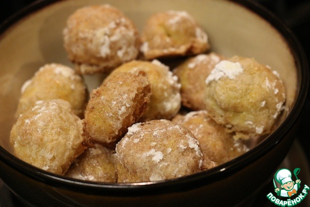 Противень застелить пекарской бумагой и выложить шарики. Выпекать при 170* примерно 25-30 минут. Периодически поглядывать, чтобы не сильно зарумянились.