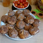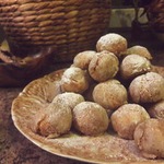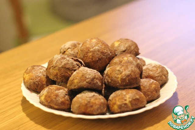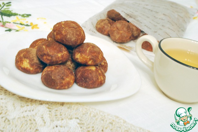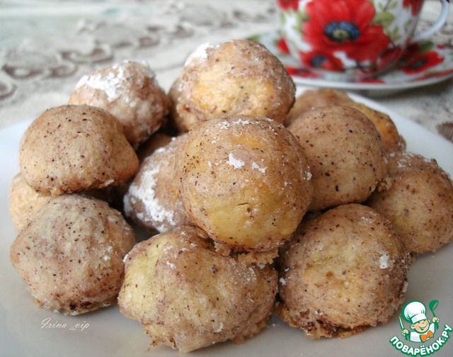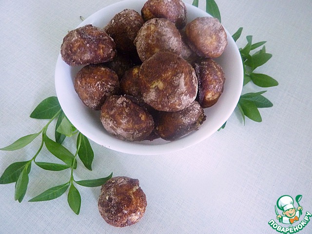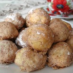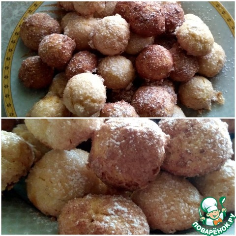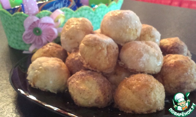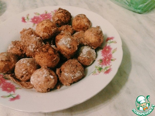 Затем, все шарики обваливаем в смеси корицы и сахарной пудры. У меня муж не любит корицу, и я делала пополам.