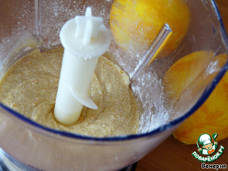Сливочное масло, муку, сахар, яйца, цедру двух апельсинов, ванильный сахар - взбить для бисквита в кухонном комбайне (блендере) до однородного состояния.