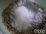 Сверху просейте муку и разрыхлитель. Перемешайте.