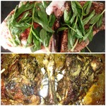 160 градусов маловато для запекания задней ноги. Следовала рецепту, через 2 часа мясо не было готово. Увеличила температуру до 180 и включила гриль. Из мяты корочки не получилось, но при этом мята получилась хрустящая и сохранила свой аромат и вкус.
