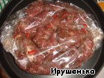 Соединить мясо с маринадом и оставить в холодильнике на 2 часа (я оставляю на ночь). -