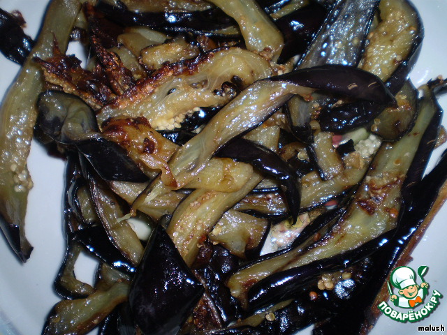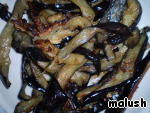С баклажанов слить сок и обжарить до готовности и розовой корочки.